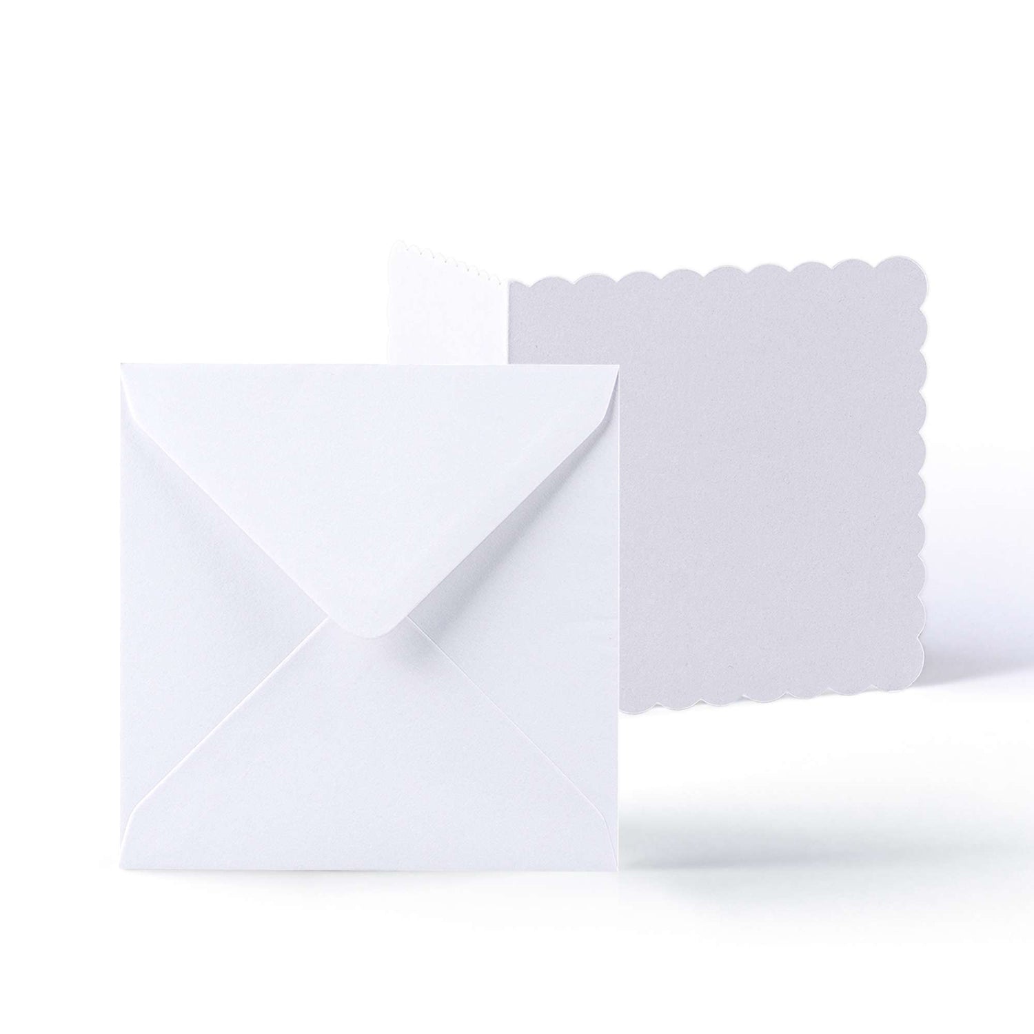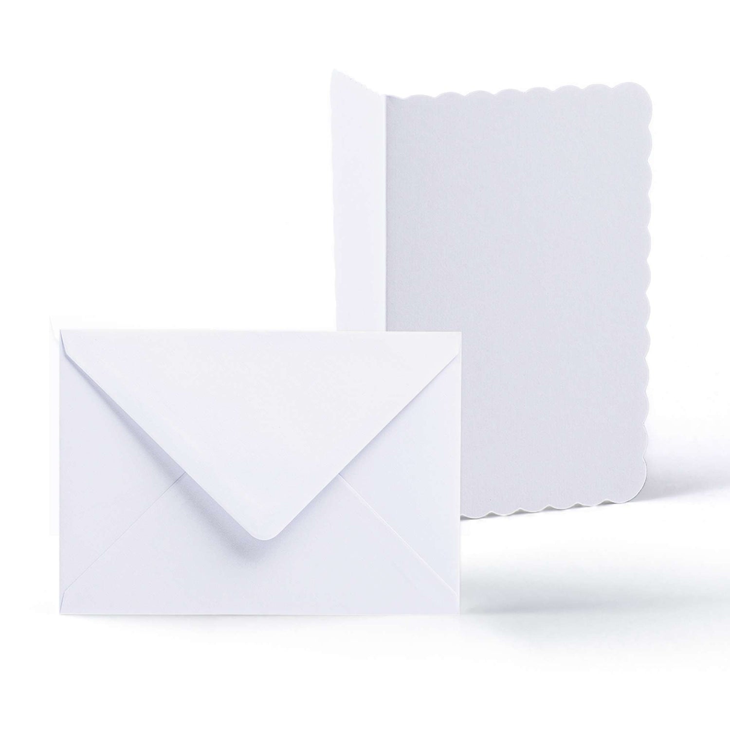 Elegantní sada bílých karet s ozdobným okrajem (300 g/m²) a obálek (100 g/m²).